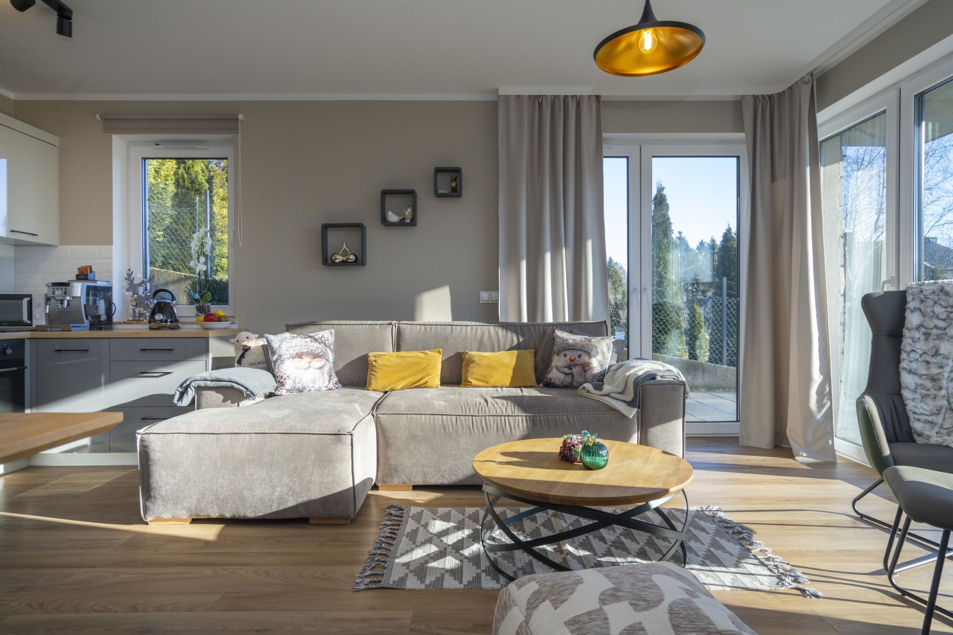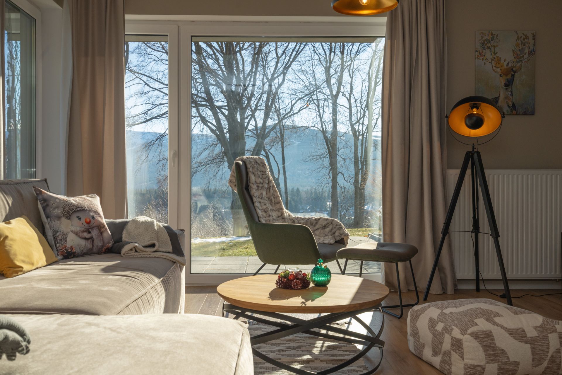 Strefa odpoczynku wypełniona jest naturalnym światłem.