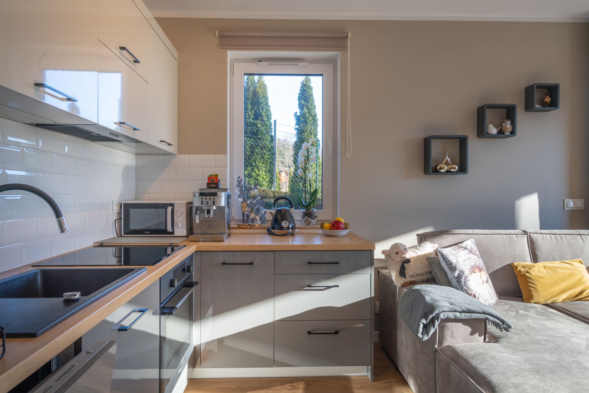 Elegancka łazienka z pralką spełnia wygodę długiego wypoczynku. Bardzo dobrze wyposażona kuchnia ze wszystkim niezbędnymi sprzętami oraz niezawodnym ekspresem na kawę.