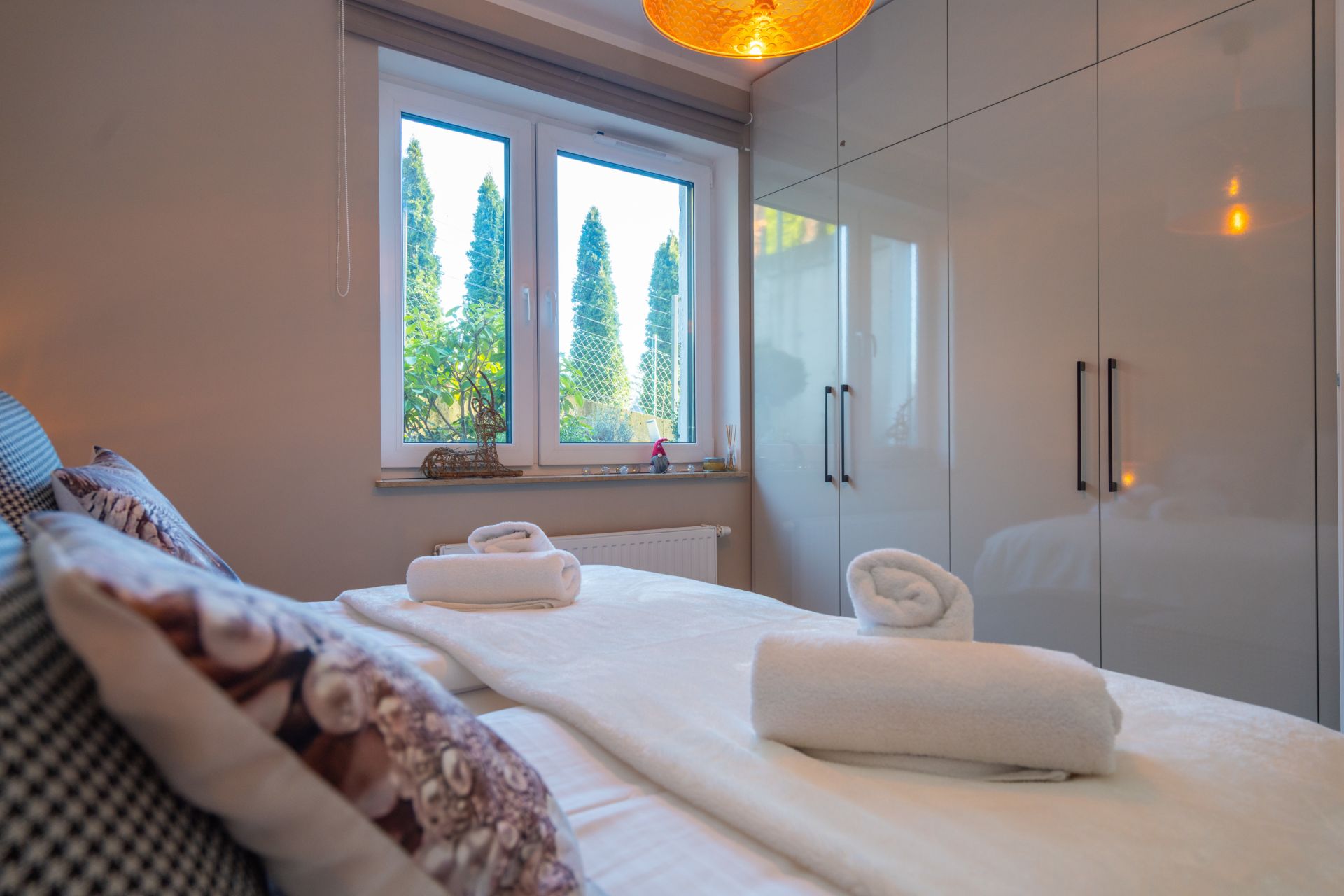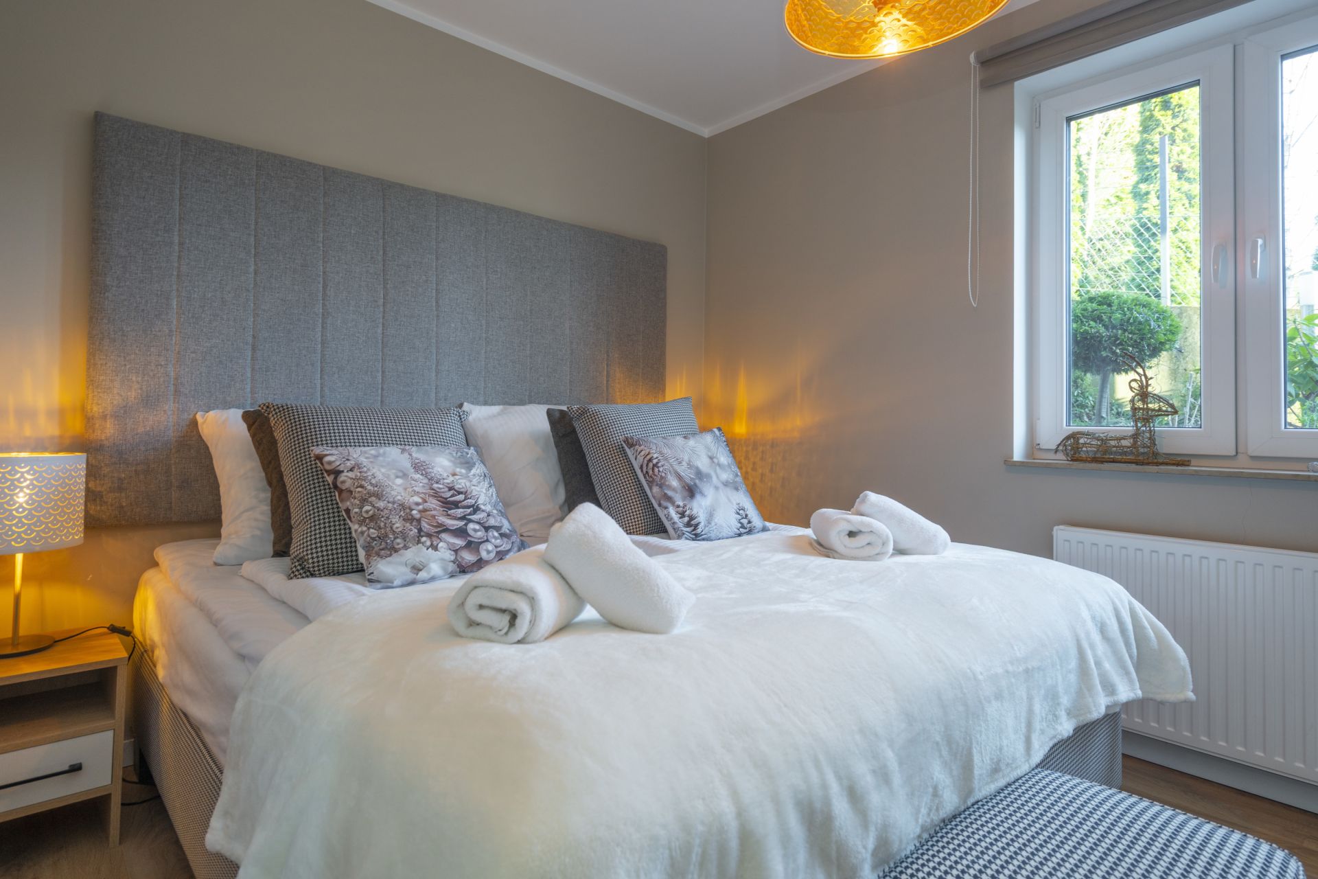 Z oddzielną sypialnią z bardzo wygodnym i king size 180cm łóżkiem zapewni spokojny sen i odpoczynek.