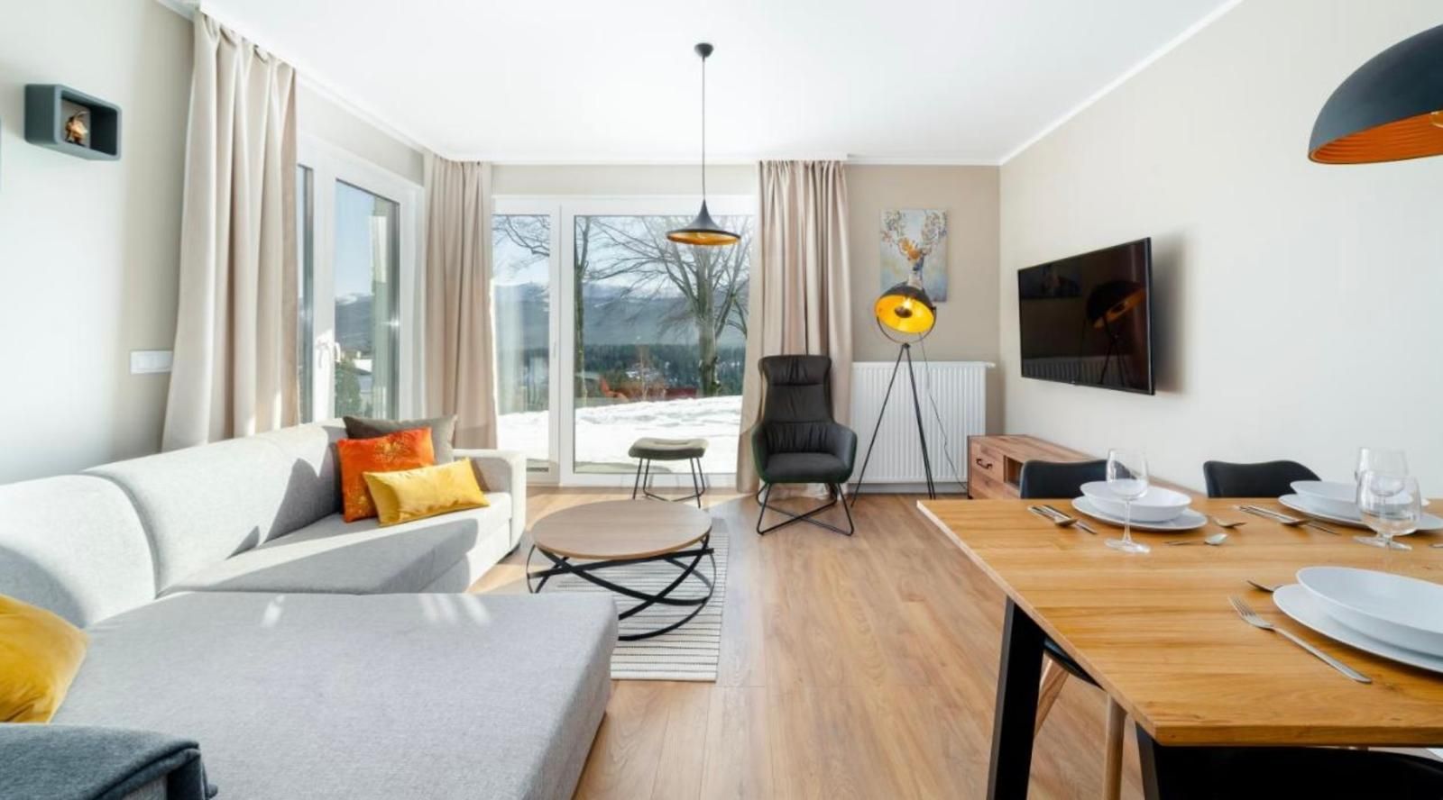 Najlepsza para to drugi po sąsiedzku apartament Izery, który łącznie może zapewnić udany wypoczynek dla dwóch rodzin lub par przyjaciół. Wspólne posiłki na tarasie gwarantują meble ogrodowe.