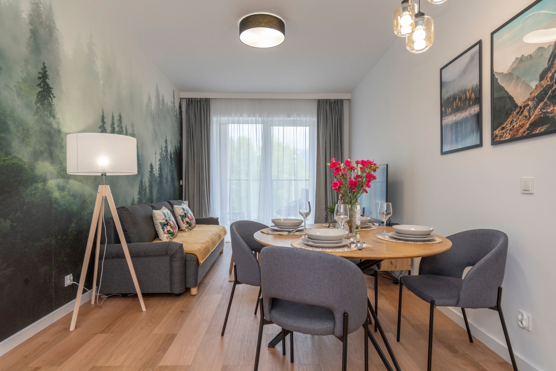 Pięknie zaaranżowany apartament dwupokojowy. Eleganckie wnętrze w nowoczesnej estetyce.