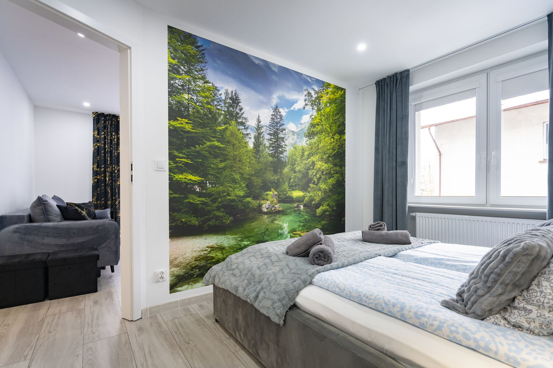 Apartament z dwoma oddzielnymi sypialniami oraz dwoma łazienkami przeznaczony dla sześciu osób.