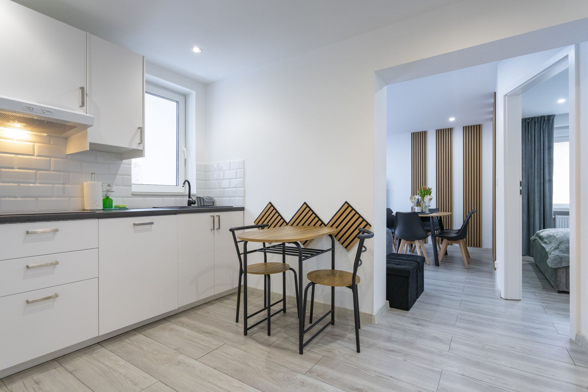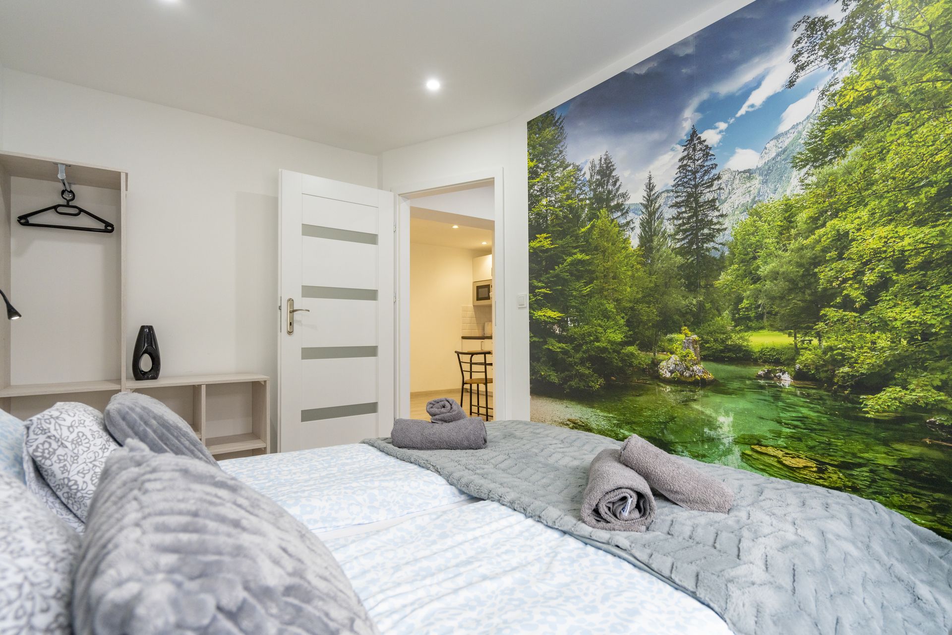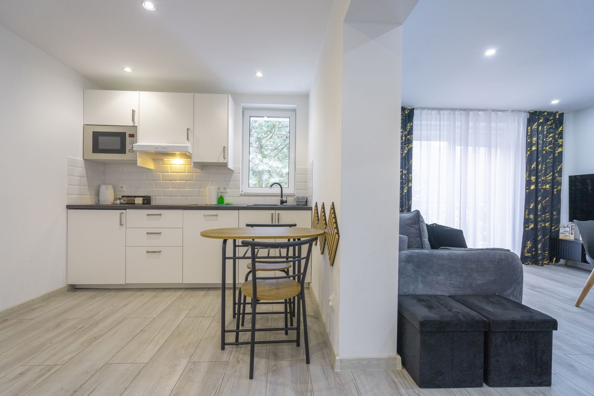 Wygodny niezależny układ wraz z salonem i kanapą do spania. Oddzielna, bardzo dobrze wyposażona kuchnia ze stołem śniadaniowym.